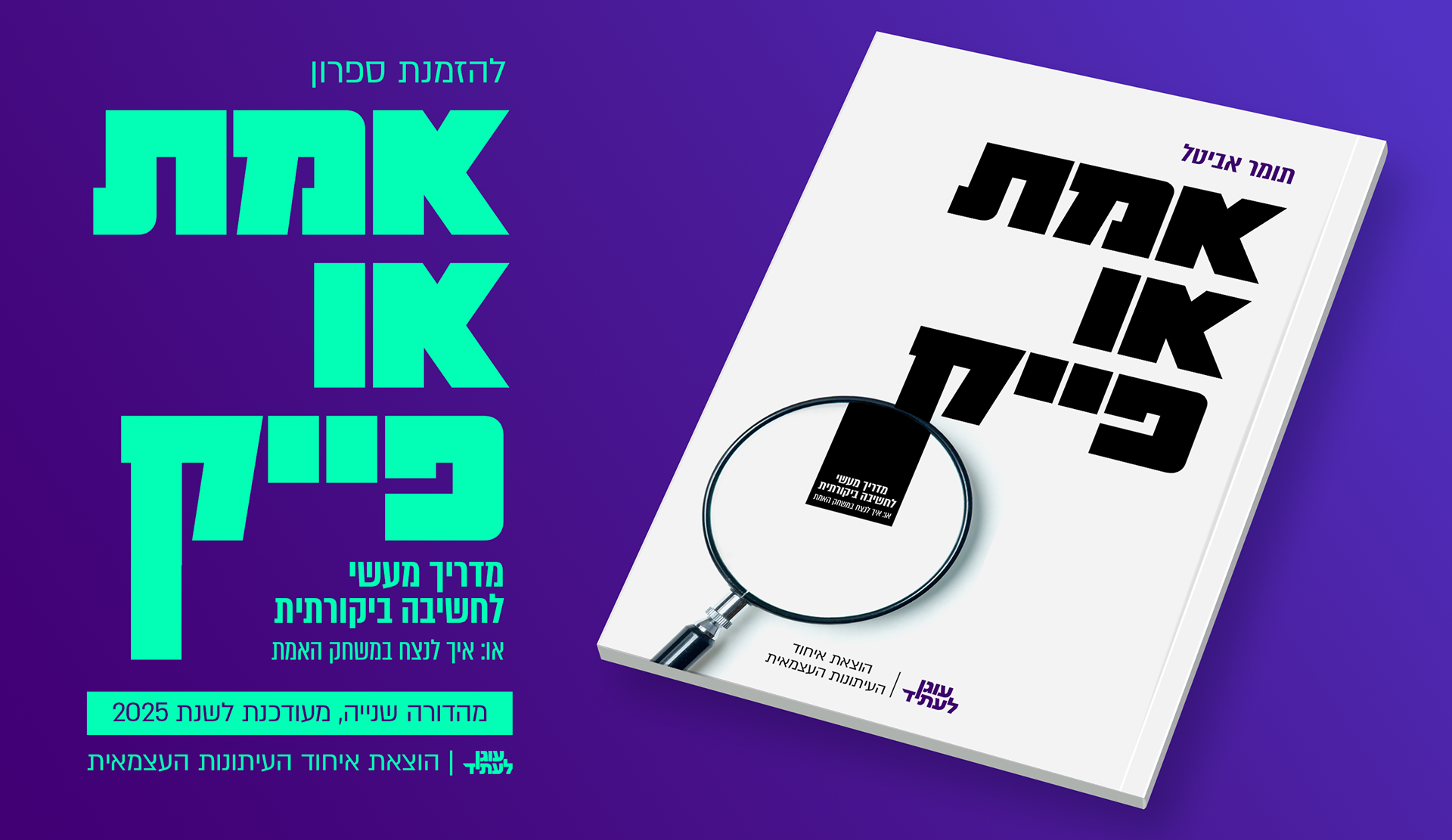 A cover and Graphic Design for reporter Tomer Avital's book "Truth or fake" (2025)